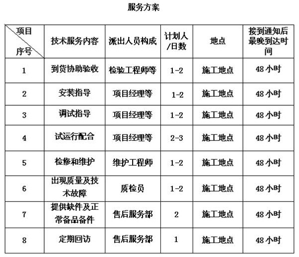 一、公司的優(yōu)勢條件 山東億成智能倉儲裝備有限公司是以技術(shù)為核心,集研發(fā)、設(shè)計施工于一體的大型鋼板庫設(shè)計施工企業(yè)。我公司擁有完善的質(zhì)量保證體系及先進(jìn)的管理體系確保本工程售后服務(wù)得到可靠的保證。 二、承諾內(nèi)容、售后服務(wù) 1、建立客戶檔案,實行電腦程序化管理,根據(jù)每個客戶的使用期限,通過電話、信函、上門等形式,了解客戶對產(chǎn)品質(zhì)量、性能、售后服務(wù)等方面的意見,及時為客戶排優(yōu)解難。 2、我公司承諾對本工程配置的設(shè)備、材料、器件(乙方購置)提供一年內(nèi)的免費(fèi)維護(hù)。 3、派駐專業(yè)的施工隊伍,施工人員掛牌上崗,接受建設(shè)方監(jiān)督。 4、服從甲方、監(jiān)理的監(jiān)督管理及與于其它工種密切配合。 5、工程竣工后,我公司根據(jù)招標(biāo)人要求,在規(guī)定的時間內(nèi)安裝調(diào)試完工。 6、在工程驗收合格后,公司將免費(fèi)為客戶提供相關(guān)人員的技術(shù)培訓(xùn),內(nèi)容包括設(shè)備操作規(guī)程、日常維護(hù)、預(yù)防性維修、系統(tǒng)故障調(diào)校等維護(hù)保養(yǎng)程序。 7、重視客戶反映,接受客戶投訴。 8、系統(tǒng)使用過程中一旦發(fā)生故障,公司維修人員將在正常工作日兩日內(nèi)到現(xiàn)場。 9、免費(fèi)質(zhì)量保證期:質(zhì)保期為一年。 三、地基異常的約定 (點擊查看)